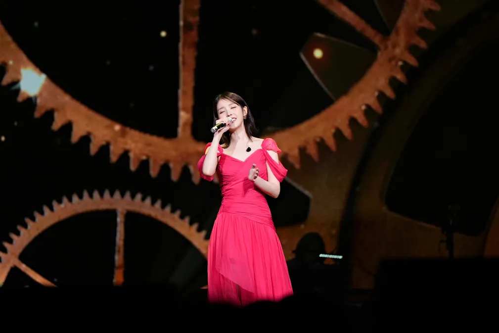 As fans bustled into the venue, people started getting situated, finding their seats. At every seat was a gift for attendees, an unexpected but thoughtful gift that IU later let the crowd know was from her mom. As the lights dimmed and the stage lit up, the live band could be heard well and clear. Starting the show off with “Holssi,” the crowd was screaming so loud it felt like the floor was shaking.
